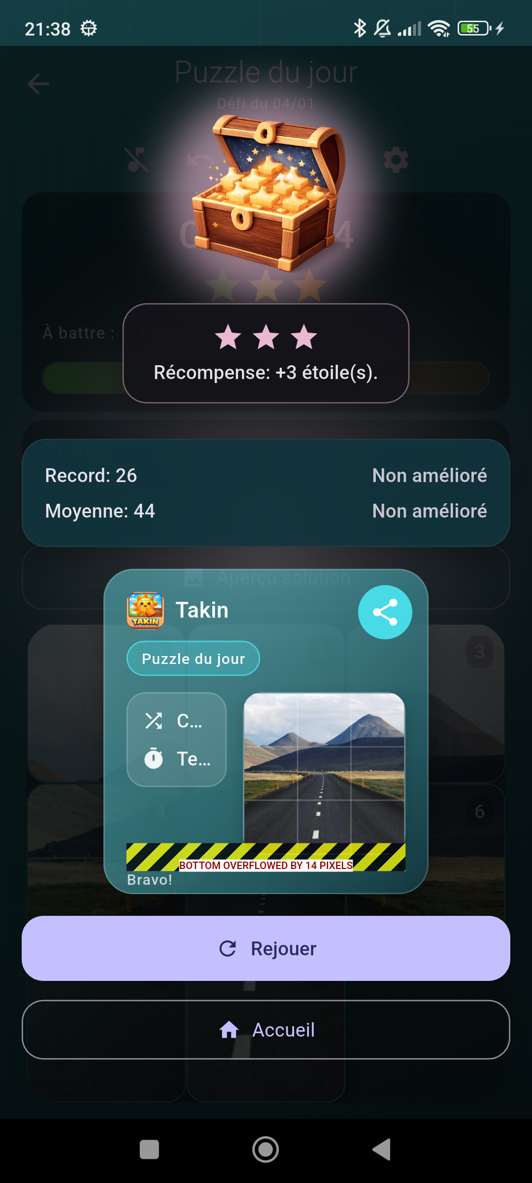 Solve daily challenges, unlock cozy themes, and turn your own photos into puzzles. Made for quick sessions or long, relaxing runs.